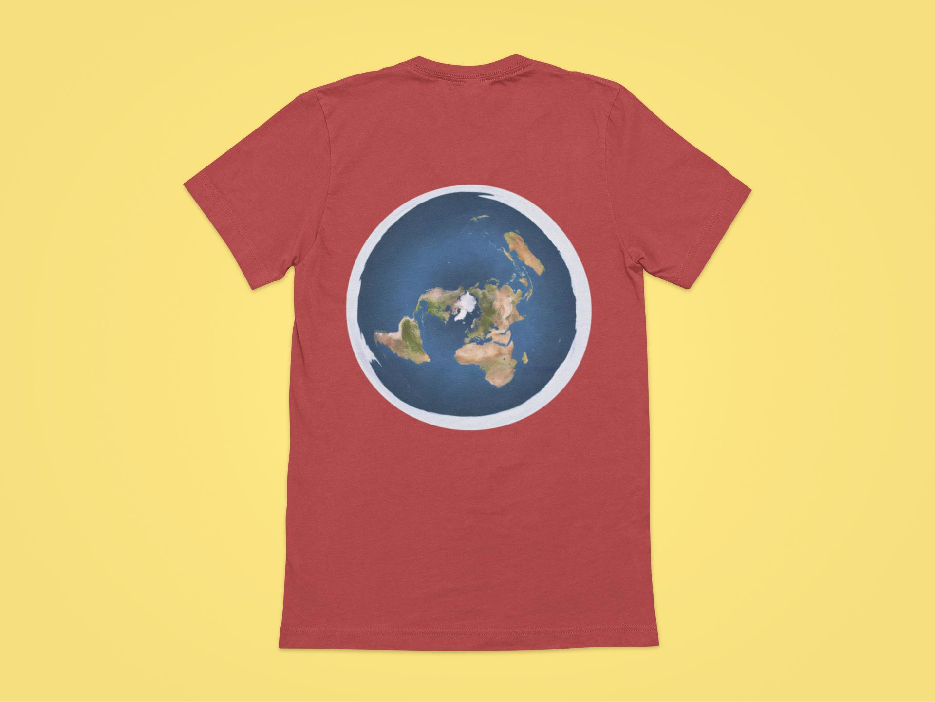 No, it’s not the Blue Marble. It’s the Blue Pancake! Great Flat Earth T-Shirt! 100% cotton, available in 9 colors, sizes XS through 2XL!