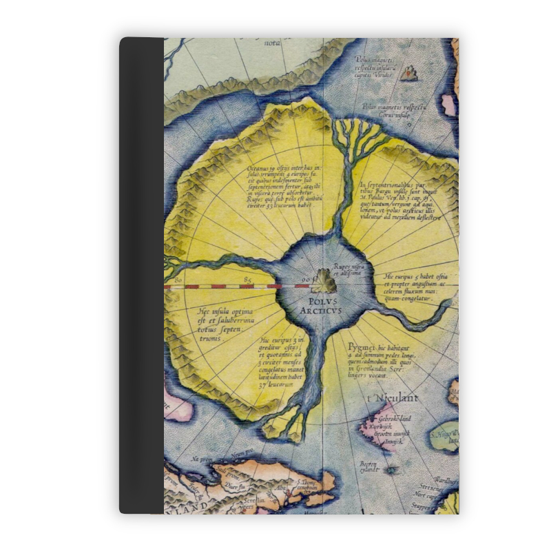 This printed notepad featuring the four waters at the north pole as described in Genesis comes with pre-printed lines, allowing you to write neatly between them. The notepad has a black binding, making the back of the writing pad black. Additionally, these printed writing pads have a suede look, which adds a touch of luxury.
